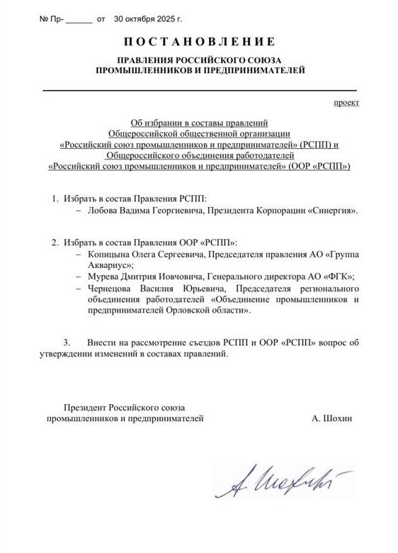 Председатель ОППОО Василий Чернецов был избран в состав Правления Общероссийского объединения работодателей «Российский Союз Промышленников и Предпринимателей».